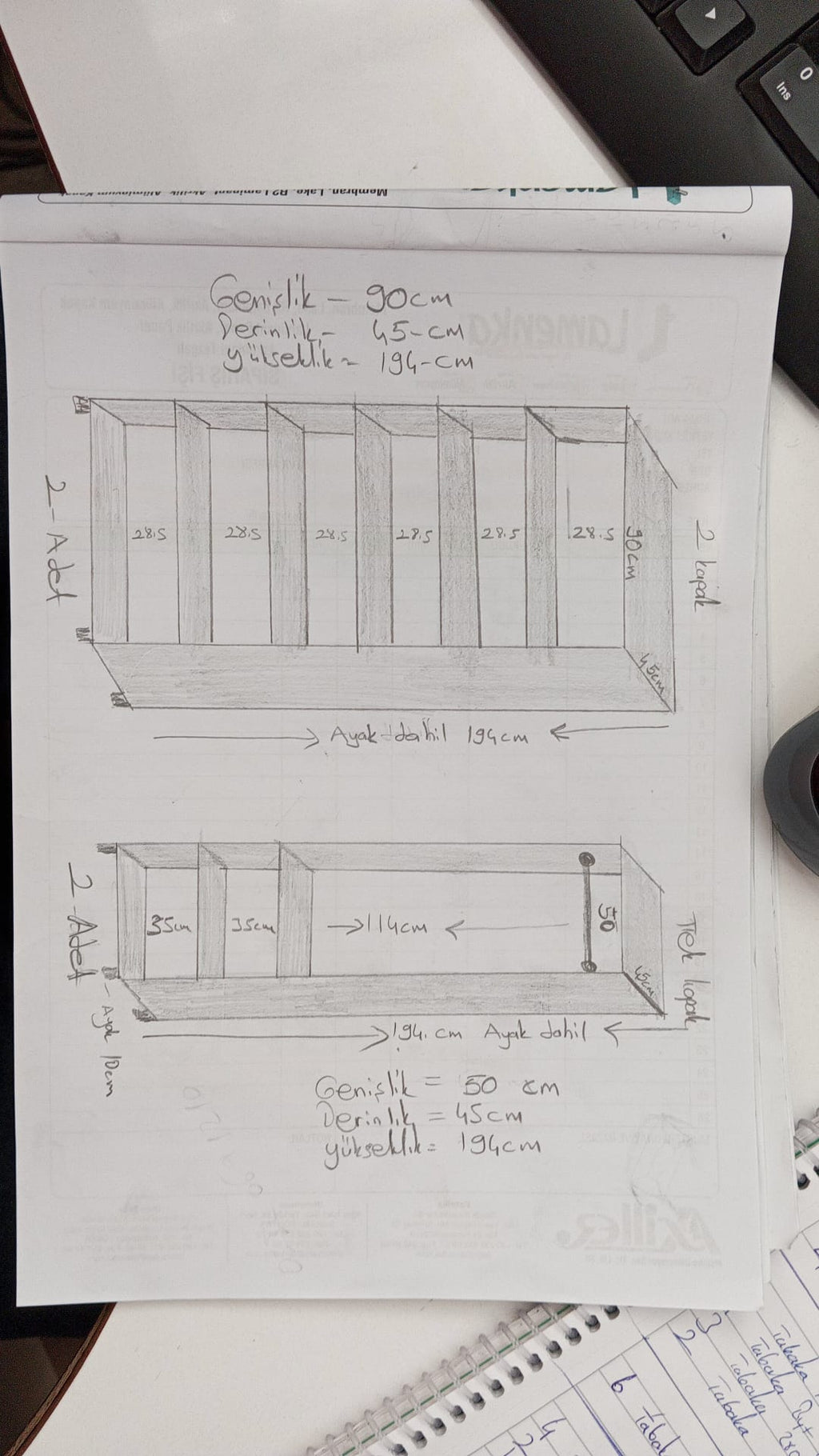 194 YÜKSEKLİK 90 GENİŞLİK 45 DERİNLİK DOLAP